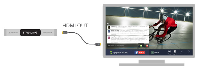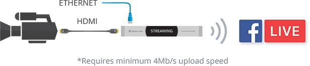 使用Epiphan Webcaster X1?將您的高清攝像機流式傳輸到您的Facebook時間軸,事件表,分類組或頁面中。它可與任何攝像機,混音器或其它具有HDMI?輸出的設備配合使用。