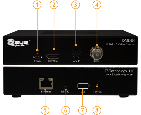 1: 電源開關 2: HDMI輸入 3: A/V輸入 4: SDI輸入