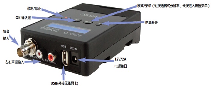 OK確認鍵短按抓單幀;長按顯示電量、輸入分辨率、日期時間