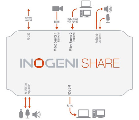 vMix?和Wirecast?應(yīng)用程序可以同時管理兩個視頻源,如下所示。兩個視頻接口將顯示為“INOGENI 相機”和“INOGENI內(nèi)容”.