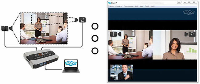 使用兩臺攝像機優化視頻協作和網絡廣播,適用于 Skype, Zoom, Webex, GoToMeeting, Hangouts, etc. 減少硬件復雜性和連接你的計算機