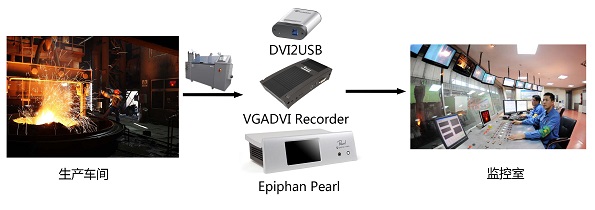 工廠車間是生產制造產品的重地,為了更好的制造出優質產品,須對重要的技術儀器儀表數據進行監控。例如鋼鐵業中必須要對溫度及污染等一些技術細節嚴格把控,要達到精細和精確化管理,提高鋼鐵產品質量,若采用視頻攝像頭監控,不僅圖像不清晰,還會比較占用空間,極不方便。艾普飛設備的出現解決了這一問題,它可以從儀表設備的輸出端直接采集圖像,并以高分辨率及幀速率傳輸至控制室大屏或是分析系統,如此便可實時監控到儀表數據的變化,從而做到優質生產,為企業獲取良好的經濟效益。