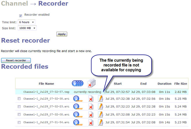 在會議開始前進行Web界面歸檔部分的必要設置。設置時間或記錄的文件大小限制。超過限制時,系統(tǒng)開始記錄數(shù)據(jù)在另一個文件。