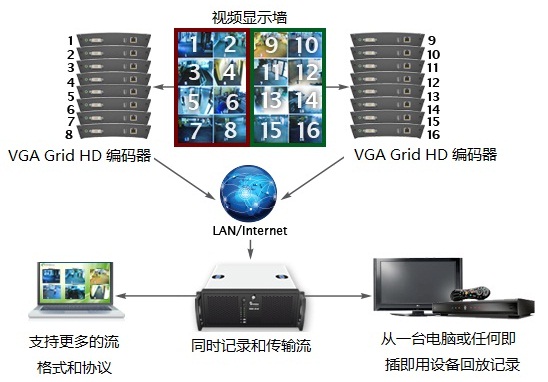 Epiphan VGA Grid——單個獨立系統可以采集、編碼、傳輸流和記錄6個視頻源到一個顯示墻上或控制室顯示矩陣中。