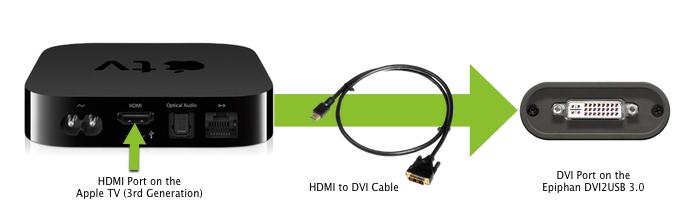 選項2: 使用你的iPad無線AirPlay和Apple TV蘋果電視連接DVI2USB 3.0視頻捕獲器