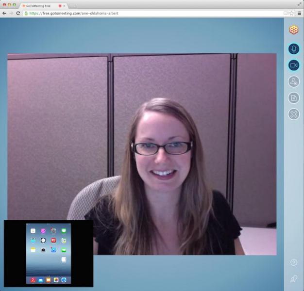 在GOTOMeeting中用任何相機都一個狀態(tài)。放心,在接收端,他們看到的iPad屏幕是完美的。