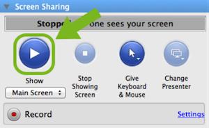 點擊“Show”顯示按鈕開始與您的與會者共享您的屏幕。