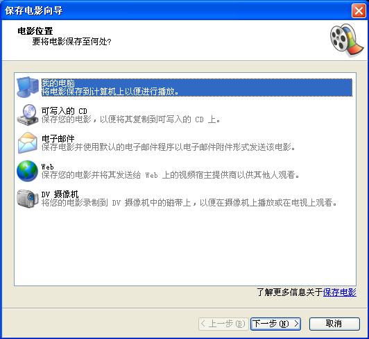 11. 當制作完成后,點擊文件菜單中的“保存電影……”,出現(xiàn)下列窗口,選擇您想要保存的方式,點擊下一步。