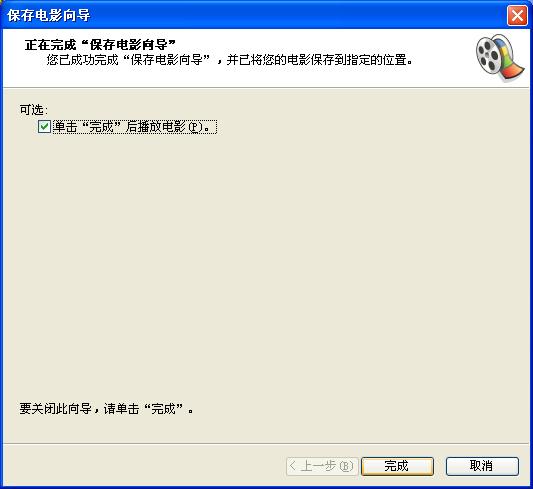 15. 完成保存影片后,您可勾選“單擊“完成”后播放電影(P)。”可調(diào)用系統(tǒng)中的播放軟件來播放影片。