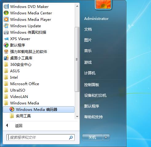 2. 安裝完成后,打開開始程序菜單中“Windows Media -> Windows Media 編碼器”程序