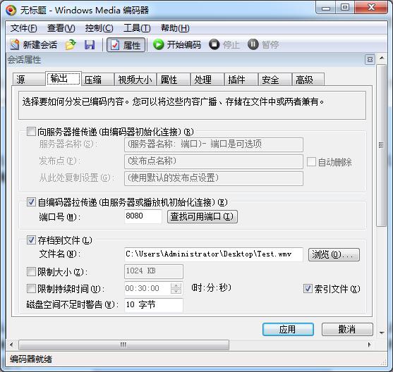 11. 點(diǎn)擊屬性窗口中的“輸出”選項(xiàng),可修改存放位置,限制大小或時間停止編碼。
