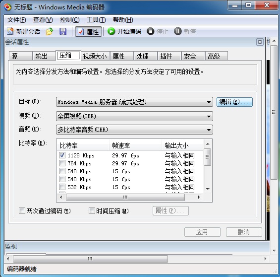 12. 點(diǎn)擊屬性窗口中的“壓縮”選項(xiàng),調(diào)整輸出文件的碼流、幀速率及分辨率大小。