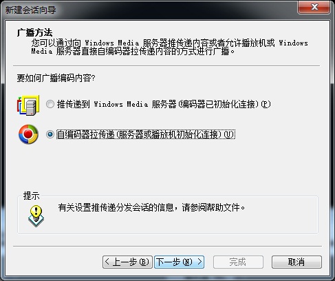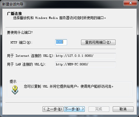 3. 選擇傳輸流的廣播方式:第N項(xiàng)為上傳至服務(wù)器,客戶端通過訪問服務(wù)器收看流內(nèi)容;第二項(xiàng)為本機(jī)做為服務(wù)器,客戶通過訪問本機(jī)收看流內(nèi)容,本文以第二項(xiàng)為例。