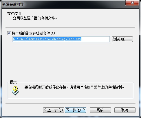 6. 此處為編碼時的保存位置,點(diǎn)擊“瀏覽”按鈕找到存放位置并輸入名稱。不勾選則只進(jìn)行網(wǎng)絡(luò)傳輸不保存文件,點(diǎn)擊下一步。