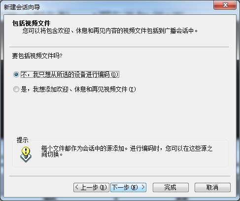 7. 在此,您可以選擇給視頻加一些屬性信息或是傳輸流時加入歡迎視頻文件等,若都不需要則直接點(diǎn)擊“完成”按鈕即可。