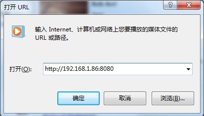 3. 在打開框中輸入步驟2的第4步中的IP地址及端口號,即編碼機(jī)的IP地址及端口號,(IP地址與端口號之間必須用英文的標(biāo)點(diǎn)符號“:”進(jìn)行分隔),點(diǎn)擊確定即可收看廣播內(nèi)容。