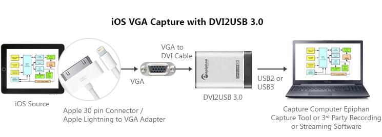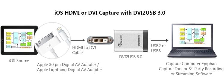 DVI2USB 3.0能夠捕獲1920 x 1200分辨率的信號,對于任何iPad或iPhone用戶來說這是個很好的解決方案。現在在iPad上播放全屏動畫,你使用DVI2USB 3.0肯定能將每一個像素捕獲并保存.